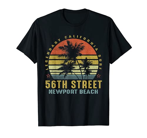 - Featuring the words LEGENDARY CALIFORNIA SURF, 56TH STREET, NEWPORT BEACH in a cool distressed vintage aesthetic with a retro sunset and palm tree. The perfect gift for your surfer. Show them your inner surf legend by rocking this design.
