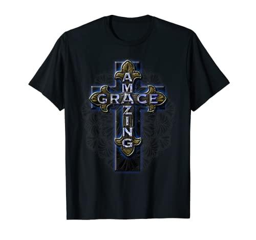 - Featuring the graphic letters of AMAZING GRACE on a decorative cross in front of a distressed mandala background. This design is perfect for church, Bible Study or anywhere. Show your gratitude for the free grace of God by rocking this Design.