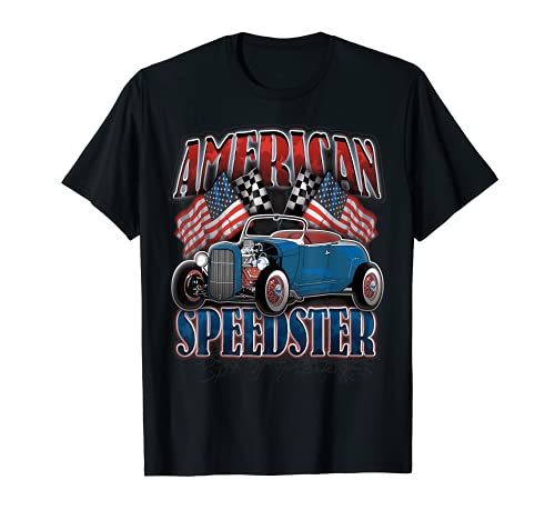 - Featuring a classic roadster image, American and checkered racing flags with the words American Speedster in red white and blue this design is perfect for your car show enthusiast, cruiser, mechanic, Motorhead, cluber or collector. Rock this design!