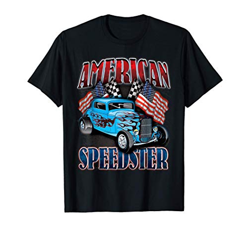 - Featuring a classic car image, the American and checkered racing flags with the words American Speedster in red white and blue this shirt is perfect for your car show enthusiast, cruiser, mechanic, Motorhead, cluber or collector. Rock this shirt anywhere!