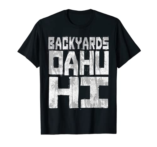 - Featuring the words BACKYARDS OAHU HI in a vintage, distressed, blocky retro typestyle with palm trees. A great choice for your beach lover. Show them your inner surfer by rocking this cool beach design.