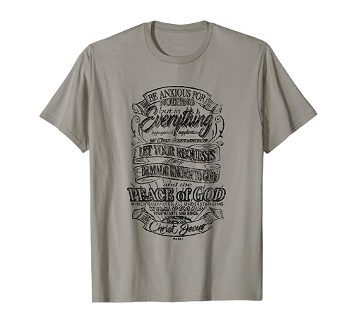 - Featuring the popular Philippians 4:6-7 Scripture in a popular distressed vintage style. This shirt is perfect to wear to church, baptism, Bible Study or family holidays. Share your peace of God that surpasses all understanding by rocking this Design