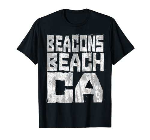 - Featuring the words BEACONS BEACH CA in a vintage, distressed, blocky retro typestyle with palm trees. A great choice for your beach lover. Show them your inner surfer by rocking this cool beach design.