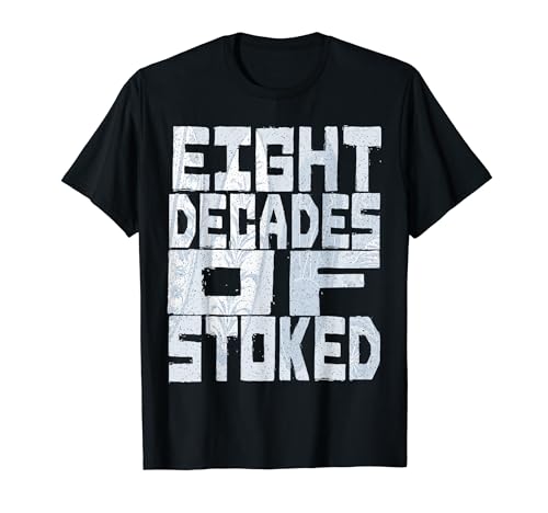 - This listing features a unique distressed surf text design celebrating “Eight Decades of Stoked."The design includes subtle surfboard graphics integrated into the text.It's a great birthday design for surfers or anyone who loves the beach and surf culture!