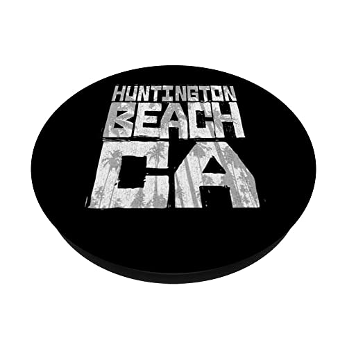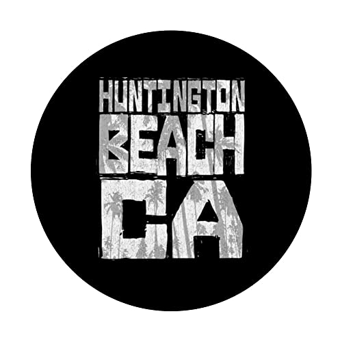 - Featuring the words Huntington Beach CA in a vintage, distressed, blocky retro typestyle with palm trees. A great choice for your beach lover. Show them your inner surfer by rocking this cool beach design.