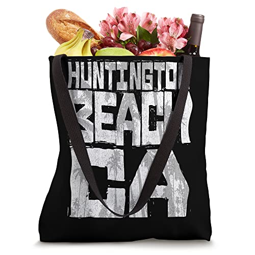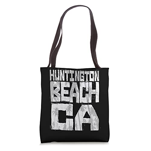 - Featuring the words Huntington Beach CA in a vintage, distressed, blocky retro typestyle with palm trees. A great choice for your beach lover. Show them your inner surfer by rocking this cool beach design.