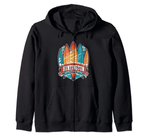 Huntington Beach CA Rebel Surf Edgy Surfboard Design Zip Hoodie
