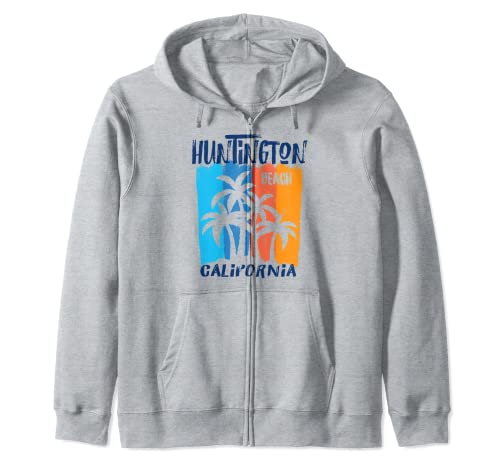 Huntington Beach California Fun Colorful Palm Trees Design Zip Hoodie