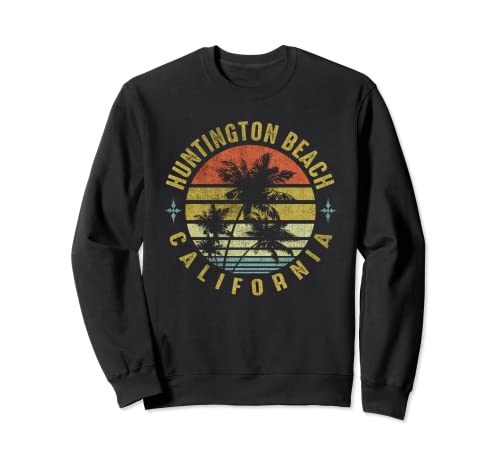 Huntington Beach California Retro Palm Sunset - Beach Design Sweatshirt