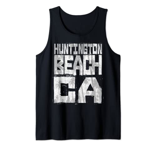 - Featuring the words HUNTINGTON BEACH CALIFORNIA in a primo distressed, vintage retro sunset background with palm trees. its tubular dude! A great choice for your beach lover. Get stoked by rocking this cool beach design.
