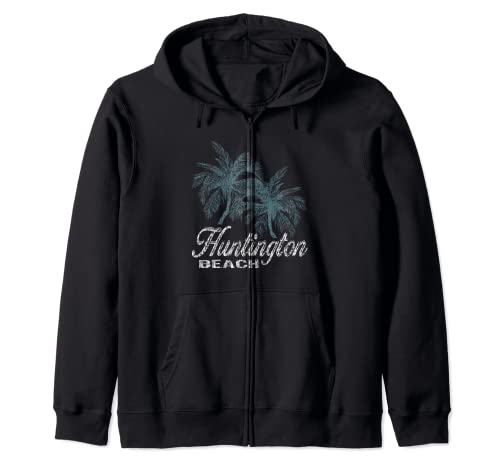 - Featuring 2 big surf green palm trees and the words Huntington Beach California in a vintage, distressed, stamp retro typestyle A great choice for your surf beach lover. Show them your inner surfer by rocking this cool surf beach design.