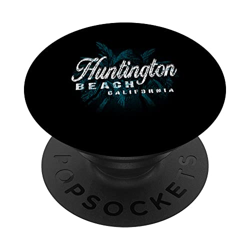 Huntington Beach - Palm Cluster Distressed Stamp PopSockets Swappable PopGrip