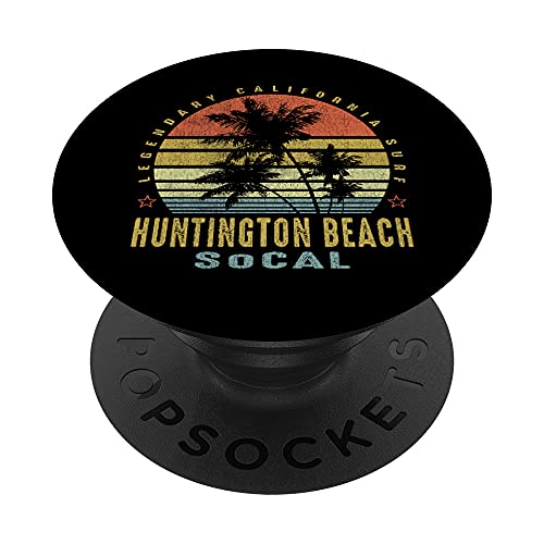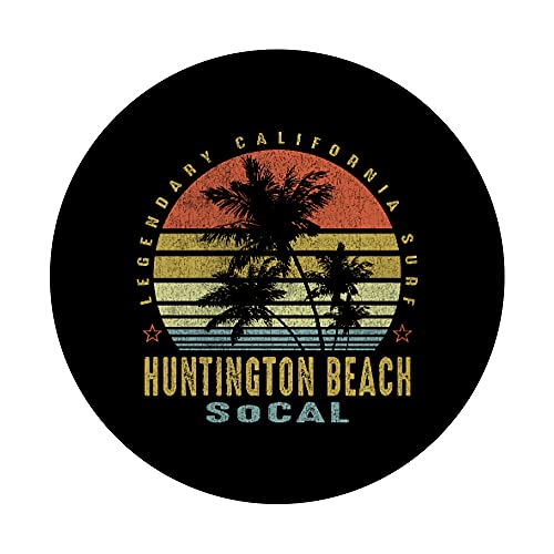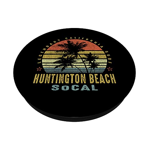 Huntington Beach Retro Palm Sunset - Beach Lover Gift idea PopSockets Swappable PopGrip