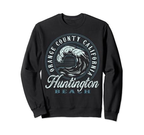 - Featuring the words ORANGE COUNTY CALIFORNIA, HUNTINGTON, BEACH in a cool distressed vintage circular aesthetic with a big retro wave. The perfect gift for your surfer. Show them your inner surf legend by rocking this design.