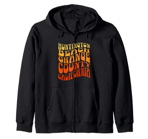 HUNTINGTON BEACH Vintage 60s Retro Waves Zip Hoodie