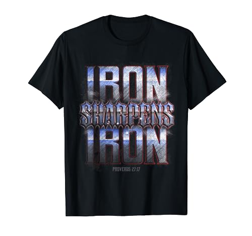 - Featuring a cool looking graphic of the Words Iron Sharpens Iron Proverbs 27:17. This design is perfect to wear to church, Bible Study or anywhere. Encourage a friend by rocking this Design