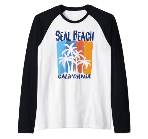 Seal Beach California Fun Colorful Palm Trees Design Raglan Baseball Tee