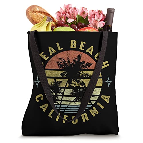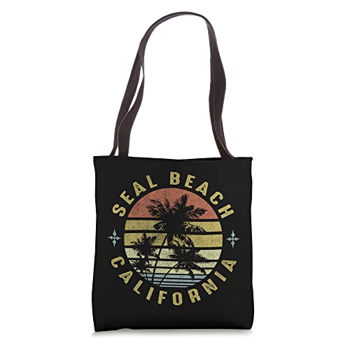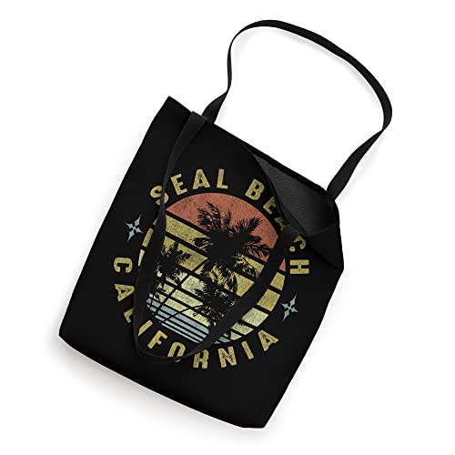 Seal Beach California Retro Palm Sunset - Beach Design Tote Bag