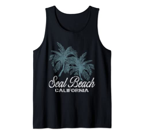 - Featuring 2 big surf green palm trees and the words Seal Beach California in a vintage, distressed, stamp retro typestyle A great choice for your surf beach lover. Show them your inner surfer by rocking this cool surf beach design.