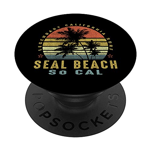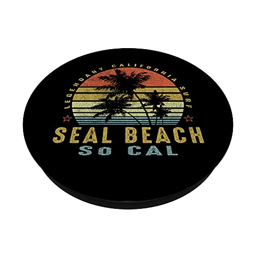 Seal Beach Retro Palm Sunset - Beach Gifts PopSockets Swappable PopGrip