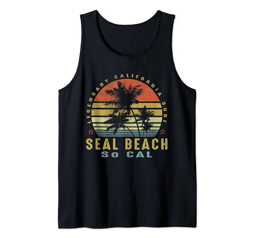 Seal Beach Retro Palm Sunset - Beach Gifts Tank Top