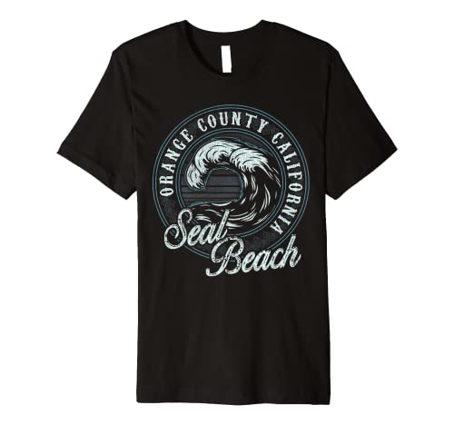 - Featuring the words ORANGE COUNTY CALIFORNIA, SEAL BEACH in a cool distressed vintage circular aesthetic with a big retro wave. The perfect gift for your surfer. Show them your inner surf legend by rocking this design.