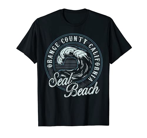 - Featuring the words ORANGE COUNTY CALIFORNIA, SEAL BEACH in a cool distressed vintage circular aesthetic with a big retro wave. The perfect gift for your surfer. Show them your inner surf legend by rocking this design.