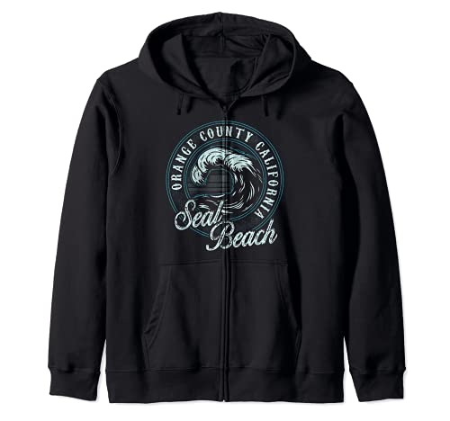 - Featuring the words ORANGE COUNTY CALIFORNIA, SEAL BEACH in a cool distressed vintage circular aesthetic with a big retro wave. The perfect gift for your surfer. Show them your inner surf legend by rocking this design.