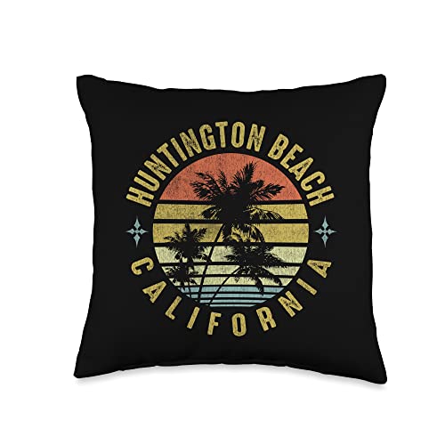 Surf Beach Huntington California Retro Palm Sunset-Beach Design Throw Pillow