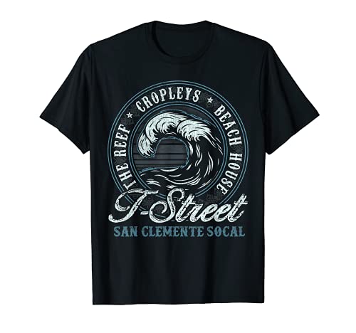 - Featuring the words THE REEF, CROPLEYS, BEACH HOUSE, T-STREET, SAN CLEMENTE SOCAL in a cool distressed vintage circular aesthetic with a big retro wave. The perfect gift for your surfer. Show them your inner surf legend by rocking this design.