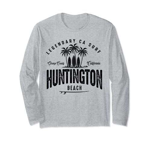 - Huntington Beach - Embrace the nostalgia of vintage surf culture with this retro distressed surf design. Featuring palms trees, surfboards and distressed text, this design captures the essence of a bygone era. For seasoned surfer or a just beach lover
