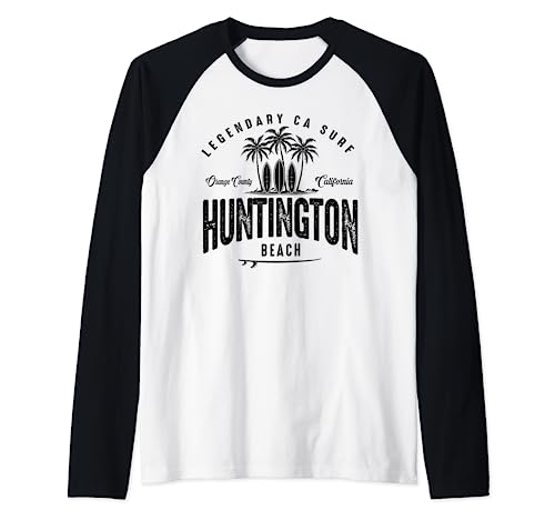 THREE VINTAGE SURFBOARDS AND PALMS - Huntington Beach Raglan Baseball Tee