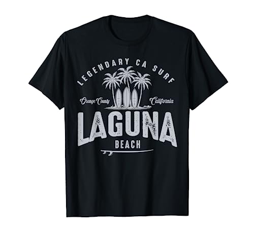 - Laguna Beach - Embrace the nostalgia of vintage surf culture with this retro distressed surf design. Featuring palms trees, surfboards and distressed text, this design captures the essence of a bygone era. For seasoned surfer or a just beach lover