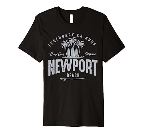 - Newport Beach - Embrace the nostalgia of vintage surf culture with this retro distressed surf design. Featuring palms trees, surfboards and distressed text, this design captures the essence of a bygone era. For seasoned surfer or a just beach lover