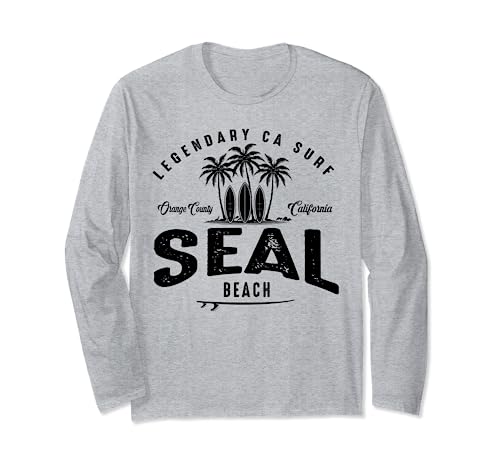 - Seal Beach - Embrace the nostalgia of vintage surf culture with this retro distressed surf design. Featuring palms trees, surfboards and distressed text, this design captures the essence of a bygone era. For seasoned surfer or a just beach lover