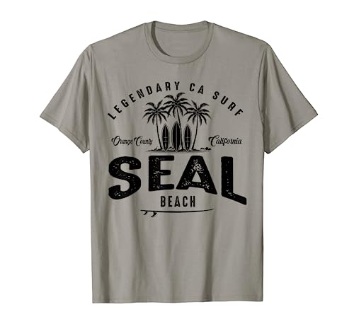 - Seal Beach - Embrace the nostalgia of vintage surf culture with this retro distressed surf design. Featuring palms trees, surfboards and distressed text, this design captures the essence of a bygone era. For seasoned surfer or a just beach lover