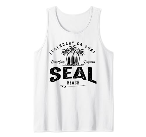 - Seal Beach - Embrace the nostalgia of vintage surf culture with this retro distressed surf design. Featuring palms trees, surfboards and distressed text, this design captures the essence of a bygone era. For seasoned surfer or a just beach lover
