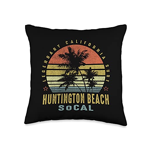Vintage Beach Vibe Huntington Retro Palm Sunset-Beach Lover Gift idea Throw Pillow