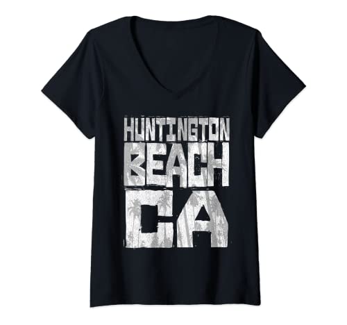 - Featuring the words Huntington Beach CA in a vintage, distressed, blocky retro typestyle with palm trees. A great choice for your beach lover. Show them your inner surfer by rocking this cool beach design.