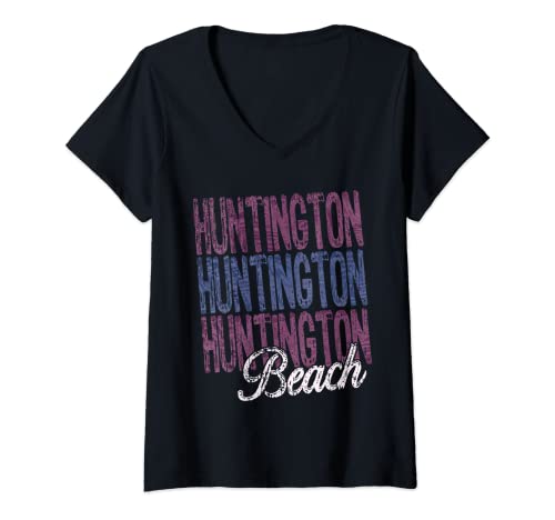 Womens Huntington Beach California Three Times Beach Design V-Neck T-Shirt