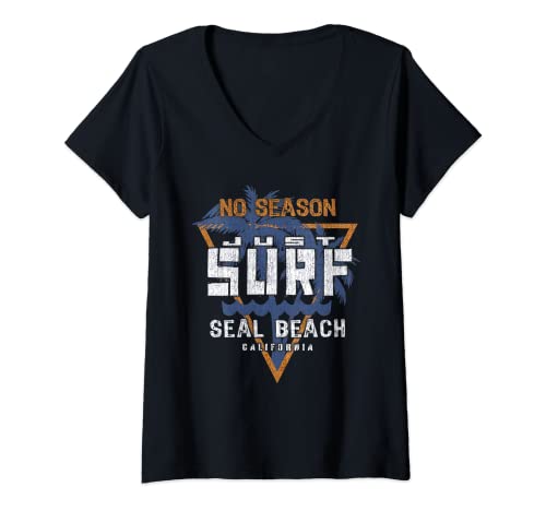 Womens No Season Just Surf - Seal Beach California V-Neck T-Shirt