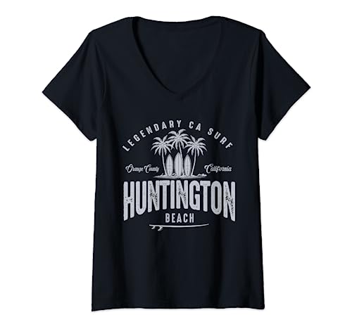 - Huntington Beach - Embrace the nostalgia of vintage surf culture with this retro distressed surf design. Featuring palms trees, surfboards and distressed text, this design captures the essence of a bygone era. For seasoned surfer or a just beach lover